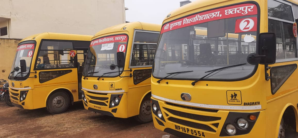 Transport safety of our students is our prime concern. To ensure safe travel the University has its own fleet of buses designed as per standards and manned by trained drivers. For supervision and monitoring a transport attendant is on board throughout the journey. Thus, our transport facility is fully equipped to provide the safest and the most convenient transport solution. In addition to the transportation provided by us, local buses from all corners of the city ply to our campus, since we are located on the NH 86 ie. Sagar, Kanpur road. The students can choose their preferable mode of transportation.