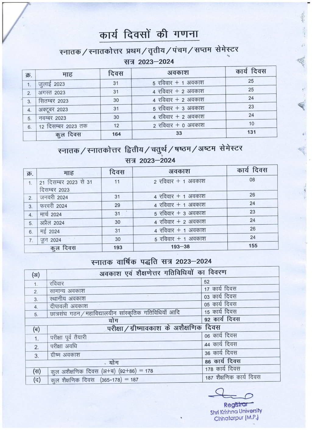Note: Some of the holidays given in the above list may be converted under special circumstances as per the orders of the Higher Authority of the University.