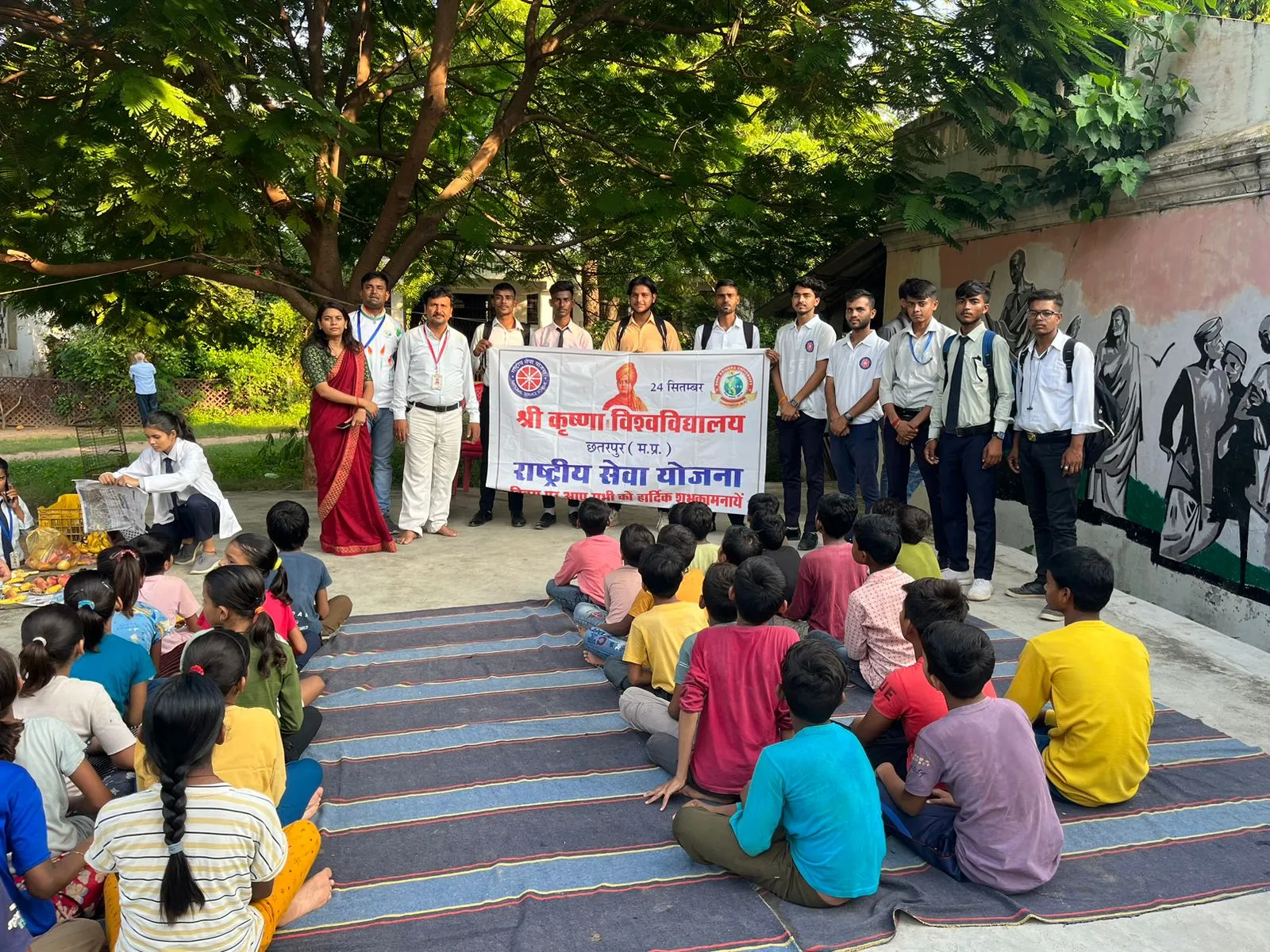 श्री कृष्णा विश्वविद्यालय छतरपुर में राष्ट्रीय सेवा योजना 2018 से संचालित हुई थी। इस योजना में 100 छात्र एवं 100 छात्रा स्वयं सेवक हैं। ये योजना कार्यक्रम अधिकारी, डॉ महेश चंद्र अहिरवार (सह.प्राध्यापक, विभागाध्यक्ष भूगोल विभाग) एवं कुमारी वर्षा यादव द्वारा संचालित है।